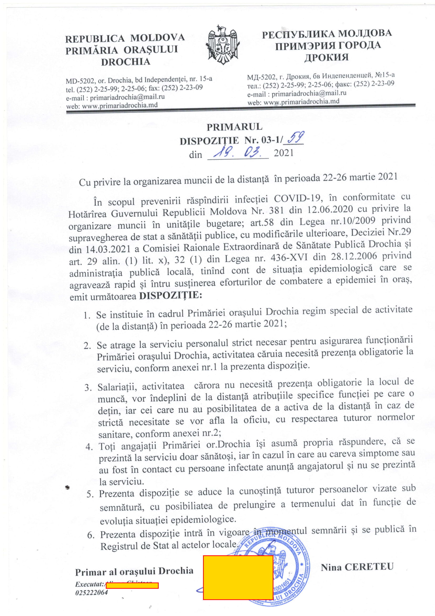 Anunț public Organizarea muncii la distanță 22-26 martie 2021